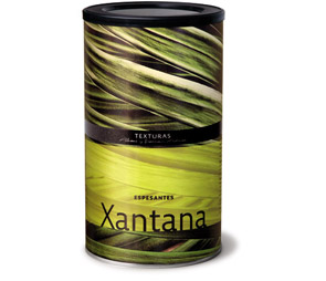 Se obtiene a partir de la fermentación del almidón de maíz con una bacteria (Xanthomonas campestris) presente en las coles. El producto resultante es una goma de gran poder espesante. Destaca también su potencial como suspensor, lo cual significa que es capaz de mantener elementos en suspensión en un líquido, sin que se hundan en el mismo, también es capaz de retener gas.